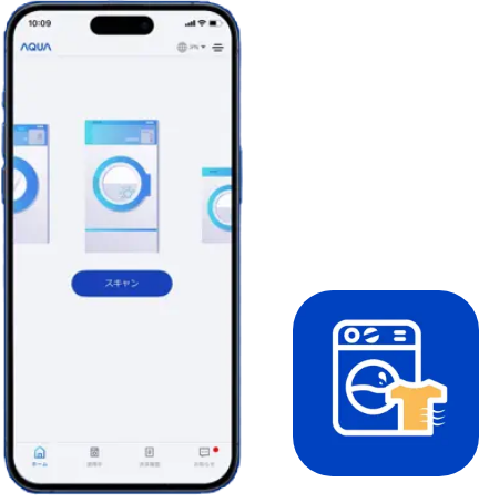 店内は無料Wi-Fi完備で待ち時間も快適。専用アプリ「AQCONECT」でキャッシュレス決済が可能です。混雑状況や機器の使用状況もスマホで確認でき、スムーズに操作・お支払いが完了。よりスマートなランドリー体験を実現します。